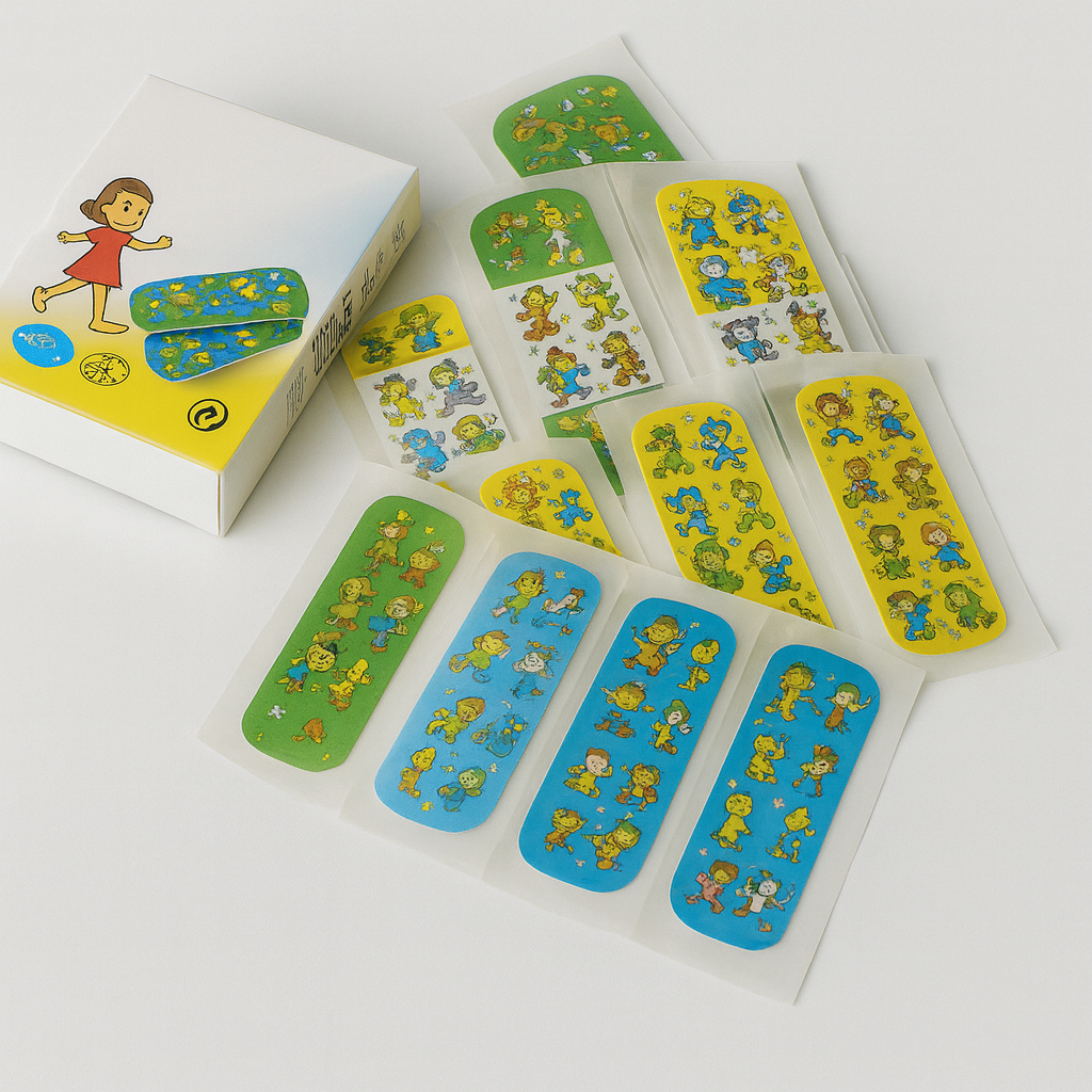 Penso adesivo com desenhos infantis. Penso hipoalergénico. Indicado para pequenos tratamentos.